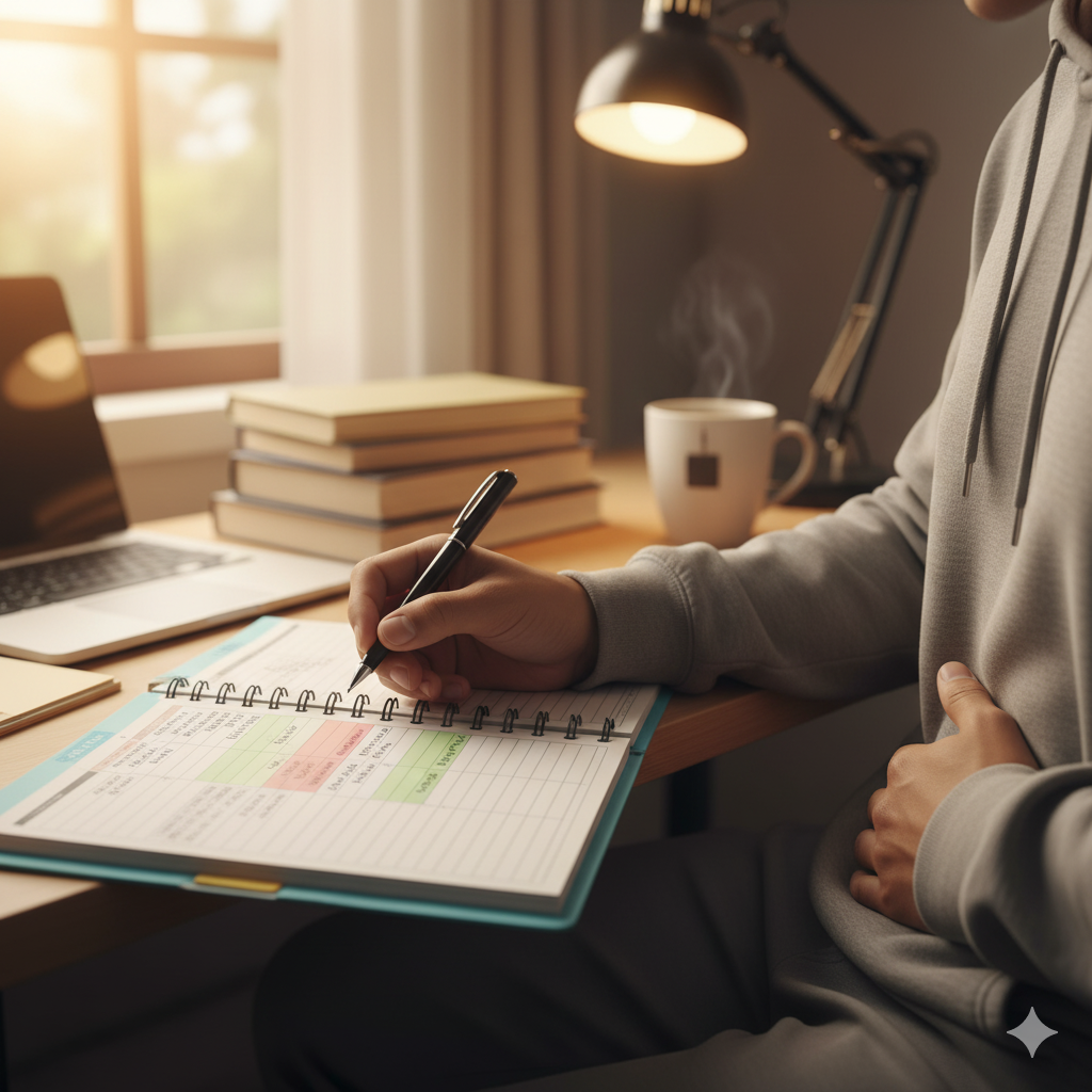 Önce 50 dakika odak + 10 dakika aktif mola şeklinde bir ritim deneyin. Dahası, üç bloktan sonra 30–40 dakikalık daha uzun bir mola iyi gelebilir. Ardından günün başında 2–3 mikro-hedef yazdırın: “2 paragraf seti + 1 saat AYT Matematik tekrar + 20 dk analiz.” Son olarak gün sonunda “tamamlandı/ertelendi/notlar” kutucuğuyla minik bir kapanış yapın.